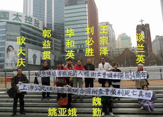 曹顺利、陈建芳曾应“国际人权服务”邀请前往瑞士日内瓦参加“人权培训”和“观摩联合国人权机制运作”,2013914日,陈建芳在广州机场被阻止出境,同一天,曹顺利女士(中国律师)在北京首都国际机场被秘密带走失踪刑拘,在朝阳看守所遭到迫害及非人道待遇半年里离世,享年52岁。