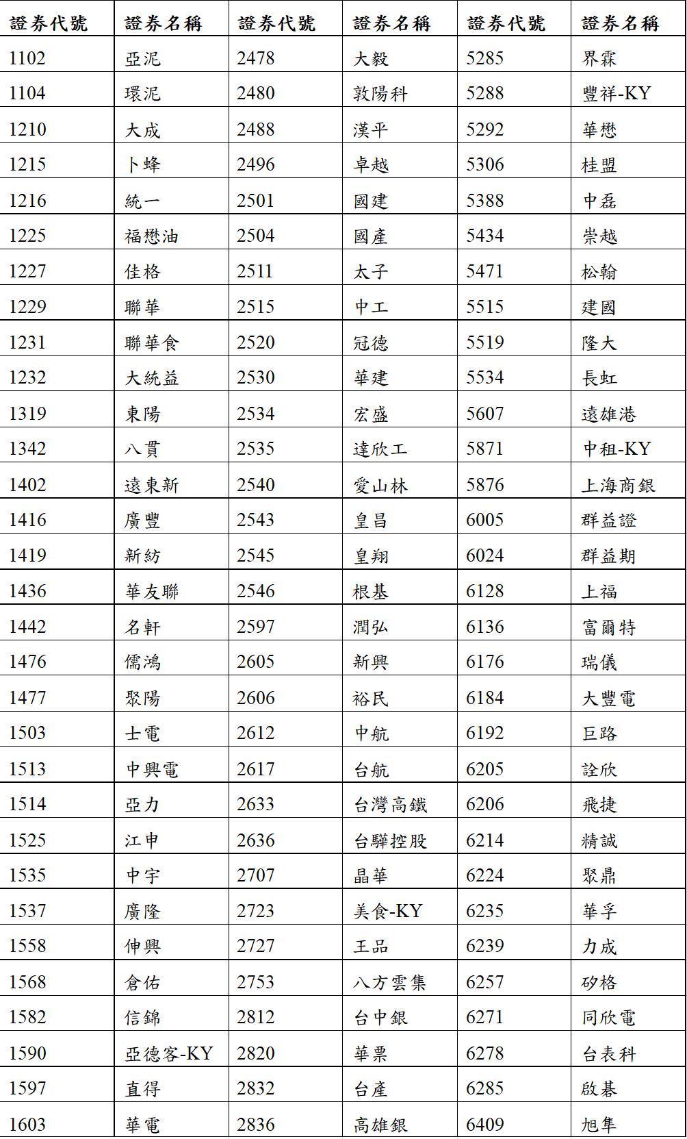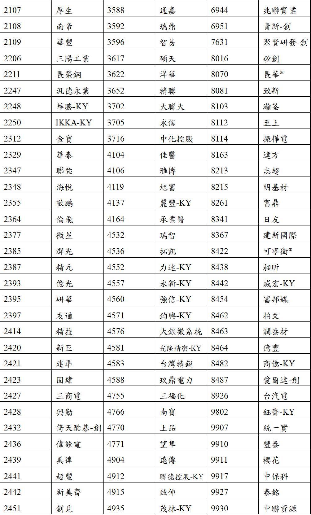 台湾璞玉指数成分股。资料来源:台湾指数公司