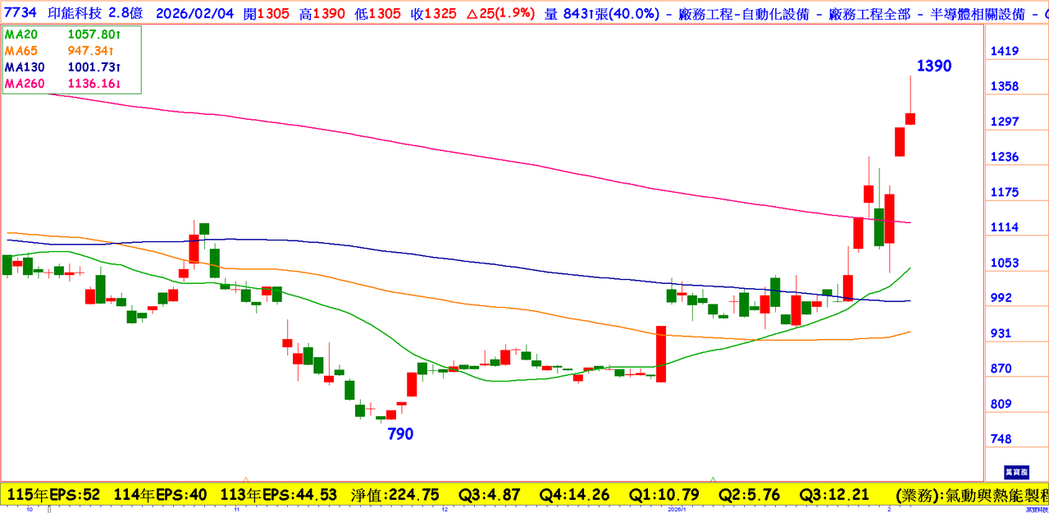 预估印能2025年获利仍可赚进超过三个股本(EPS > 30元),但2026年展望乐观,订单能见度已延伸至2026年上半年。