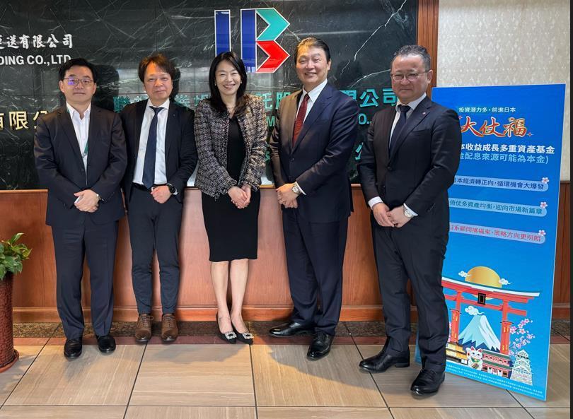 联邦日本多重资产基金投资顾问Nissay资产管理2月2日拜访联邦投信。(右至左)Nissay资产管理Teruo Shimozaki,CEO Hiroshi Ozeki,联邦投信总经理庄雅晴,Nissay资产管理Yuichi Tanaka。(邻邦投信/提供)