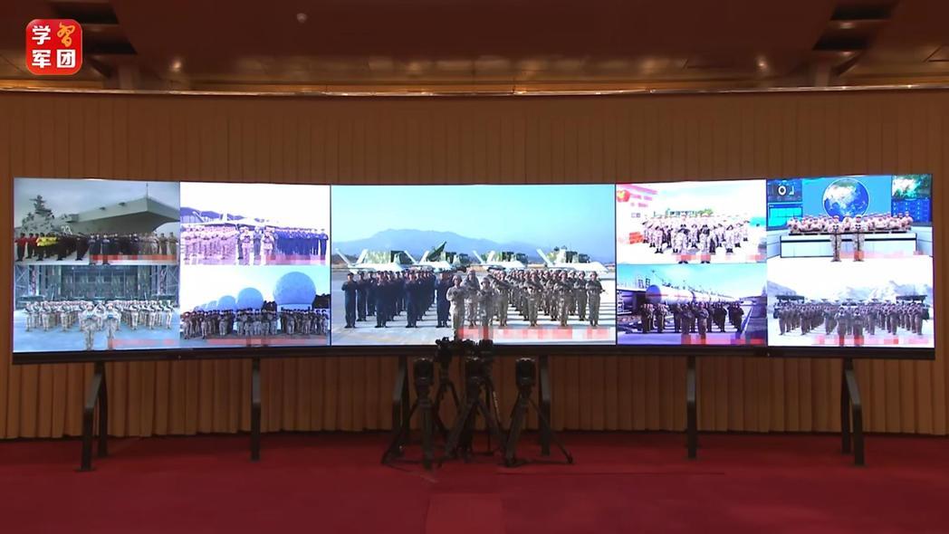 中共中央军委主席习近平10日在北京八一大楼以视讯方式慰问中共解放军部队,并向军队致上祝福。(图/取自学习军团公众号)