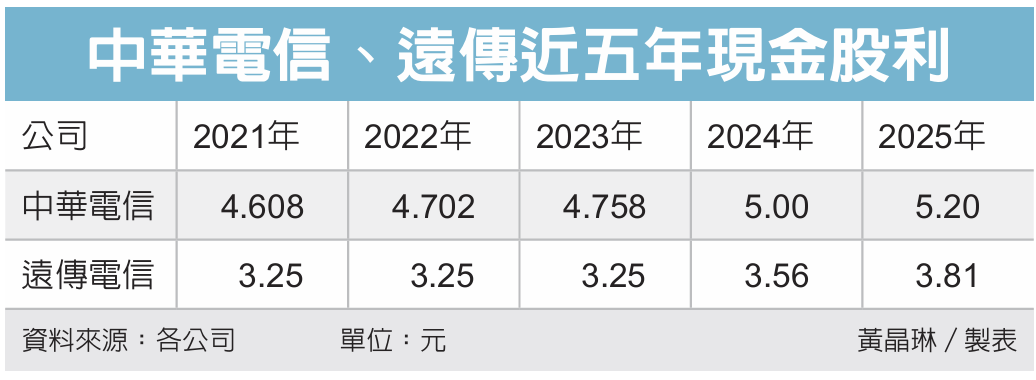 远传向来稳定配息,2021年至2023年每股都配发3.25元现金股利,均有部分来自资本公积,自2024年起,远传现金股利全部从年度获利配发,盈余分配率100%,2024年每股配发3.56元现金股利,2025年随著获利创新高,每股配发现金股利3.81元,股利为历年之最。