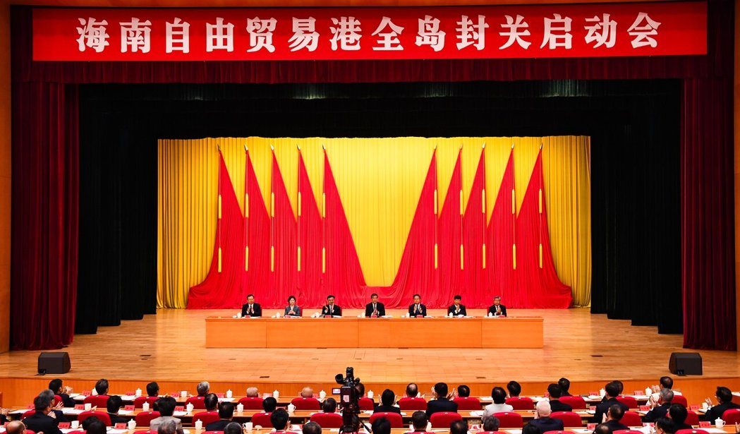海南全岛于2025年12月18日起正式「封关」运作,当天大陆国务院副总理何立峰出席在海口举行的启动活动并讲话。(新华社)