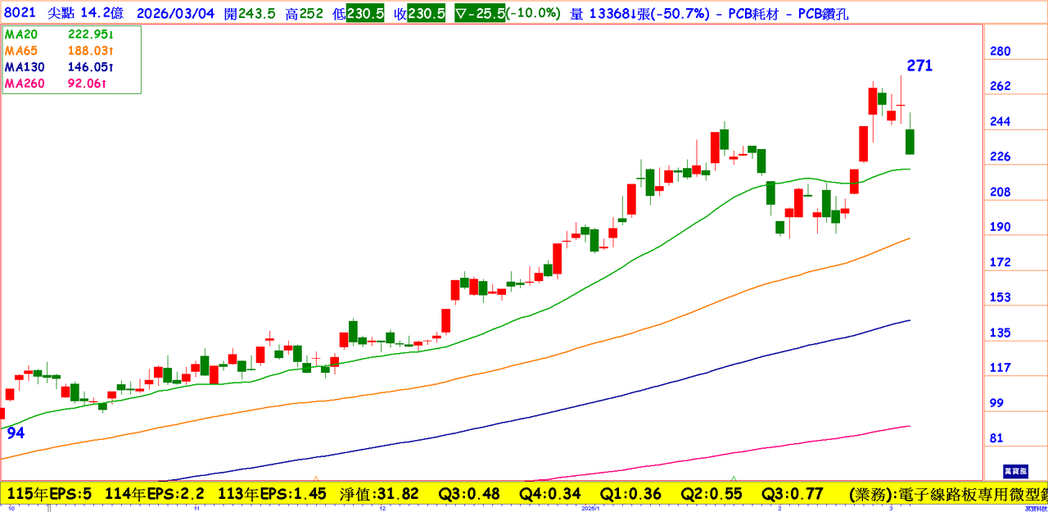 面对这波「量增价扬」的商机,台湾钻针龙头尖点正全力冲刺产能,公司预计斥资5.6亿在桃园中坜建置「钻针二厂」,地理位置紧邻欣兴、金像电及华通等 PCB 指标大厂。此举不仅是为了扩增至 3500 万支的月产能,更是为了贴近客户提供「高阶镀膜针」的客制化服务,预计2027年将迎来产能全面放量。尖点在高阶PCB钻孔技术上具备领先优势,今年成长动能来自钻针组合提升、钻孔服务稼动率提升,今年估eps 5元,投资朋友不妨留意。
