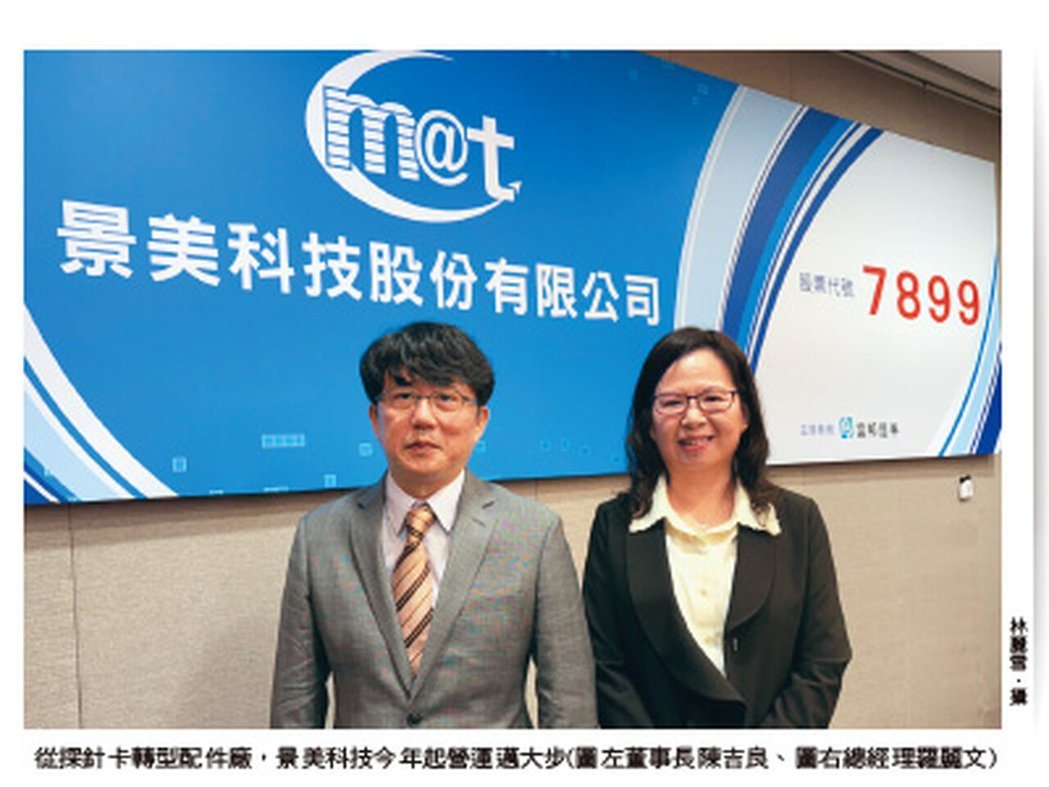 成立于二○○六年的景美科技,早期产品为成熟制程用的悬臂式探针卡,然由于悬臂式探针卡的门槛并不高,景美科技于是思考转型,总经理罗丽文回忆,当时国内高阶探针卡都来自国外,一旦出现问题,国外往返的维修费用高昂,国内重量级晶圆代工大厂因此决定自制高阶探针卡,但国内却没有公司可以提供高阶探针卡配件,这些「高阶探针卡配件用完即抛弃,这是耗材,生意可以源源不绝」,罗丽文说,景美科技就在这样的因缘际会下嗅出生意商机,自二○一三年由探针卡供应商转型为先进制程探针卡结构件供应商。