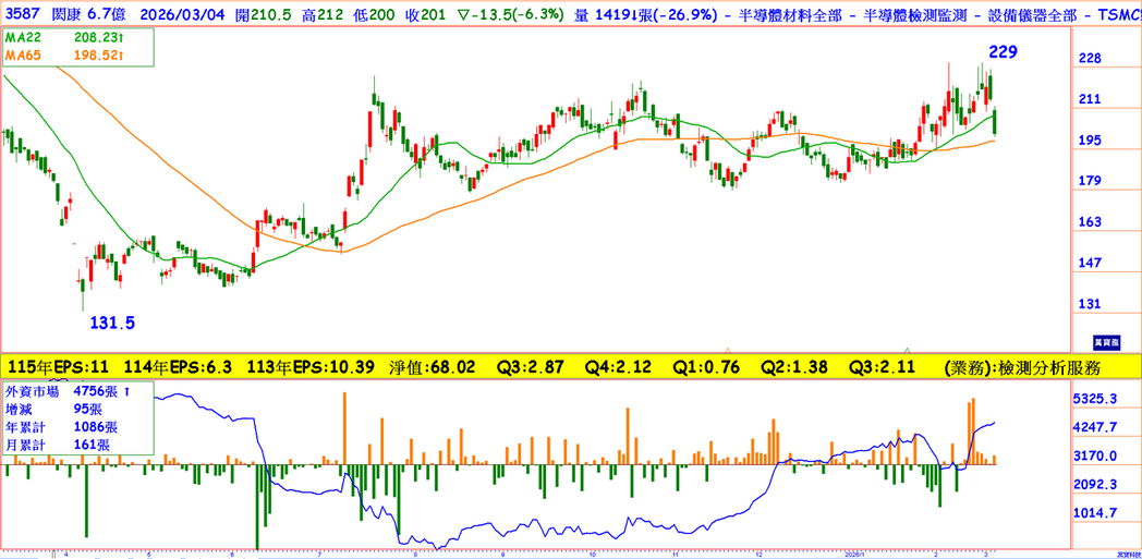 2025年营收55.45亿,年增率8.51%,创下历史新高,前3季EPS4.26元,随日本实验室产能利用率爬升,2025年第4季起毛利率开始回升,尤其是高单价的材料分析与可靠度分析占比提高,有助2026年获利攀升。2026 年1月营收为4.55亿,年增率16.8%,显示今年开局强劲,预估今年EPS有机会上看12元,本益比18倍不算高。