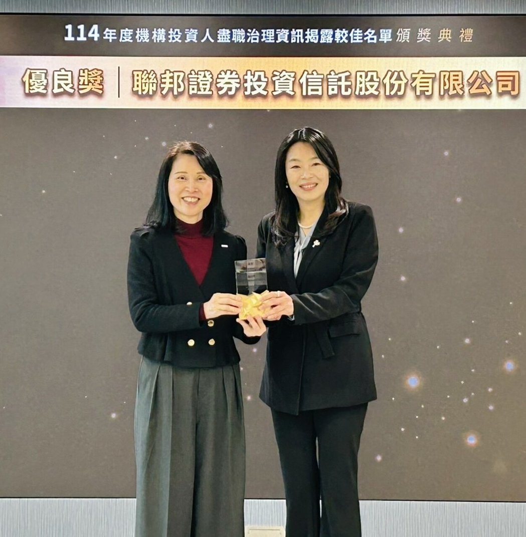证交所25日举行「114年度机构投资人尽职治理资讯揭露较佳名单」颁奖典礼,联邦投信凭借议合实务、透明投票纪录,以及ESG整合机制等,首度荣登「较佳名单」。