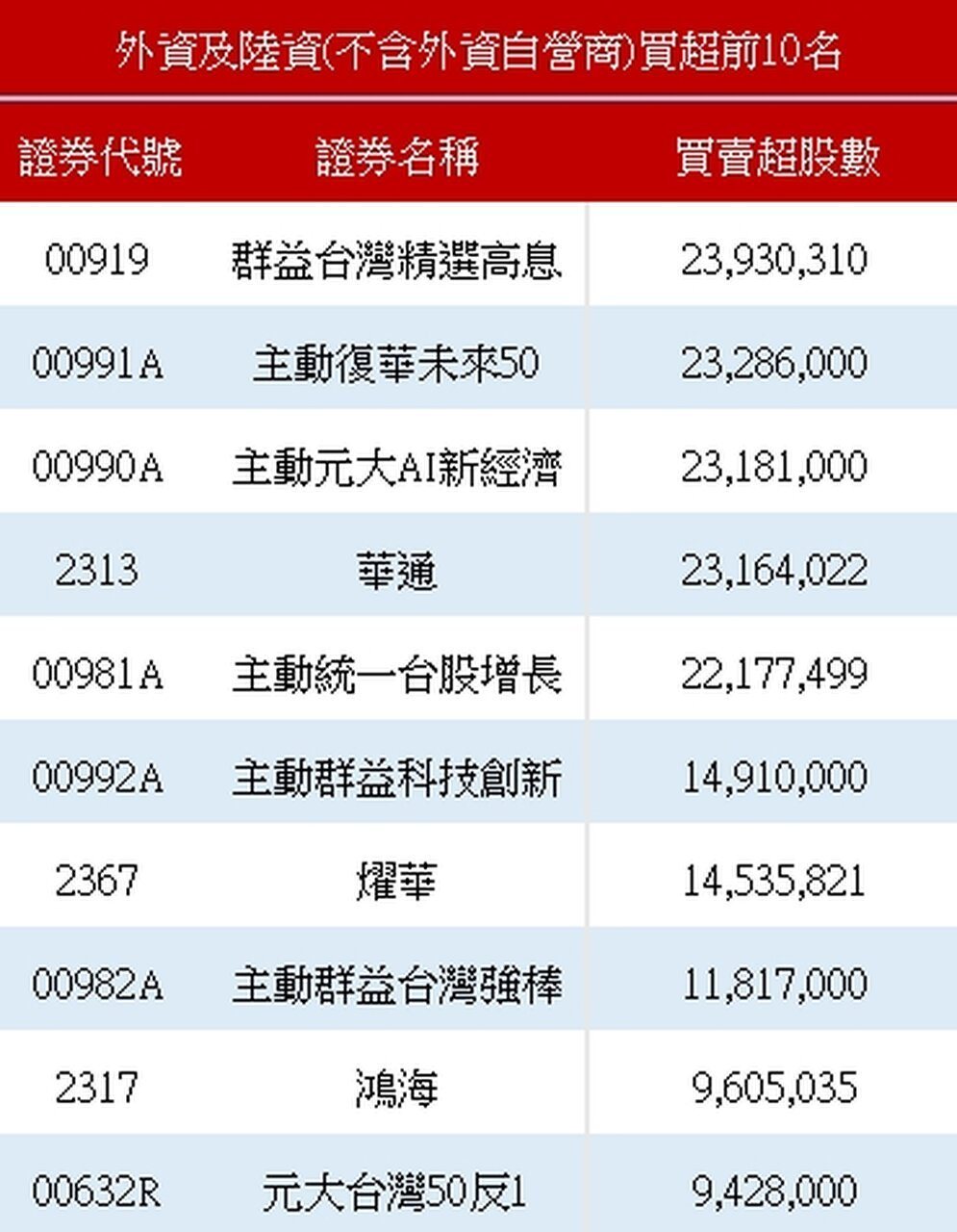 外资买超前十名。(资料来源:证交所)