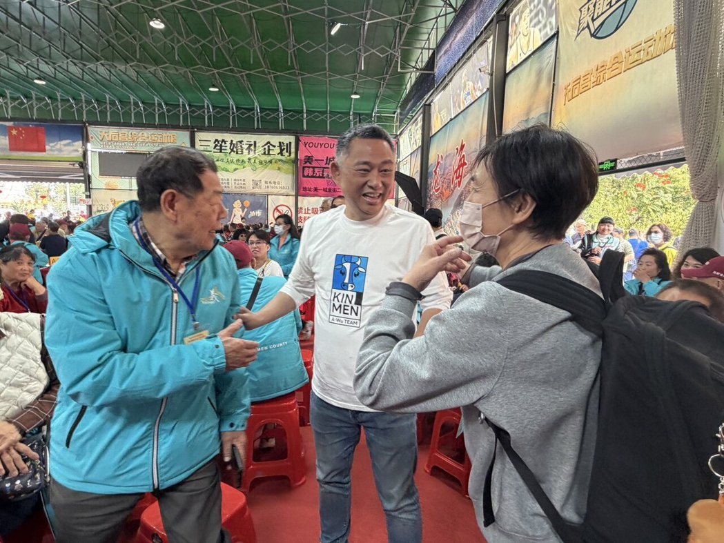 前县长杨镇浯也到场参与赴大陆关帝庙宗教交流,沿途与乡亲「博感情」,并收到不少乡亲的加油打气。记者蔡家蓁/摄影