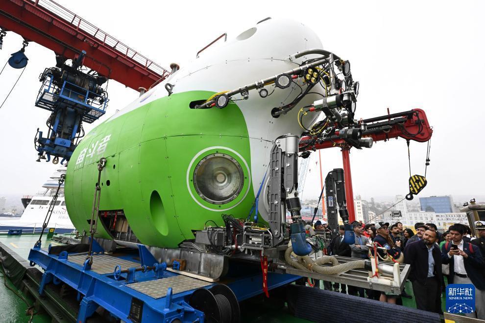 本次「探索一号」科考船搭载了大陆自主研发的「奋斗者号」载人潜水器,它是目前国际上唯一一台具备万米海底强作业能力的载人潜水器。