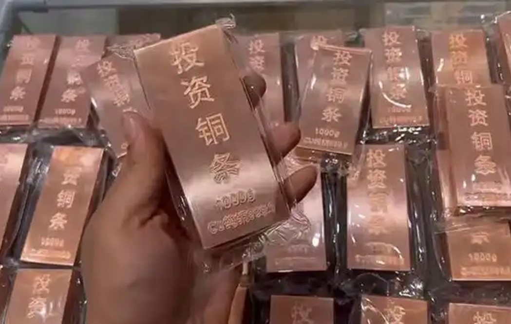 央视财经报导,在多个线上交易平台和直播间看到,1000克规格的铜条被贴上「财富铜条」「投资铜条」的标签批量售卖。有的商家表示,月初才推出的投资铜条,现在日均出货100条左右,十几天已售出上千条。