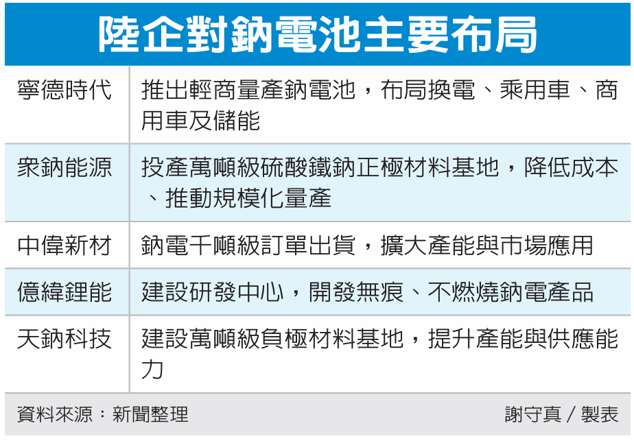 大陆钠电池正快速发展,宁德时代、众钠能源等头部企业加速量产与研发。业界分析,凭借低温性能佳、安全性高及成本优势,钠电池已具备规模化商业推广条件,在储能、两轮车与启停电源等场景持续渗透,2026年有望成为商业化应用迎来关键节点。