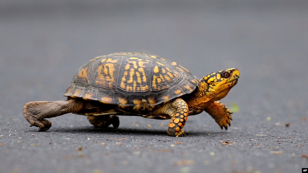 资料照片:在宾夕法尼亚州哈里斯堡的怀尔德伍德湖保护区,一只雄性东部箱龟穿过一条道路。(2009年5月2日)