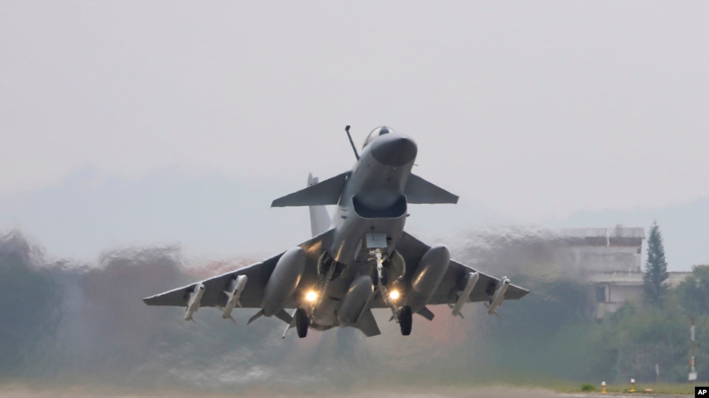 资料:2023年4月8日中国解放军歼-10战机从南京起飞,参加对台军演。