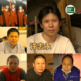 (维权网信息中心报道)2026年2月15日,本网获悉:获刑14年著名人权捍卫者许志永入狱已整整6年。2020年2月15日,许志永被广州市警方从番禺海鸥岛杨斌律师处抓捕,自此失去自由,后遭判刑14年。