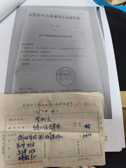1995年7月拱墅区半山商业综合公司《关于对陈树庆除名处理的批复》,里面所描述“该员于95年7月1日离岗至今”是虚构的、不符合我与该公司约定。