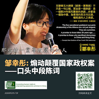 邹幸彤在「煽动颠覆国家政权案」庭审口头中段陈词要点整理