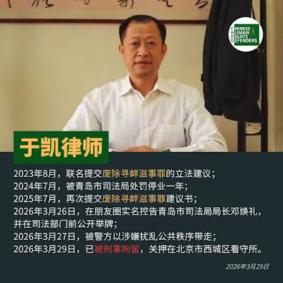 于凯律师给当局出了一道难题!他穷尽了一切法律手段之后,在司法部门口一站,举牌直指两件事:一是律协自治、交费自由、废除年检、律师黑名单等潜规则问题,二是废止备受诟病的寻衅滋事口袋罪。前者自不必说,涉及几十万律师生存权利及职业尊严,引发体制内外广泛共鸣。而为废止寻衅滋事口袋罪最后一呼,众所周知,这一罪设不单威胁到所有公民的人身权利也直接关乎整个刑事法律制度的合法性基础。