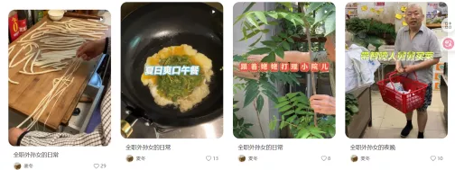 尽管博主不用和姥姥、舅舅住在一起,但每天到点去姥姥家买菜、做杂活儿、去超市采买是她日常工作内容。这份全职孙辈的工作更“接地气”。
