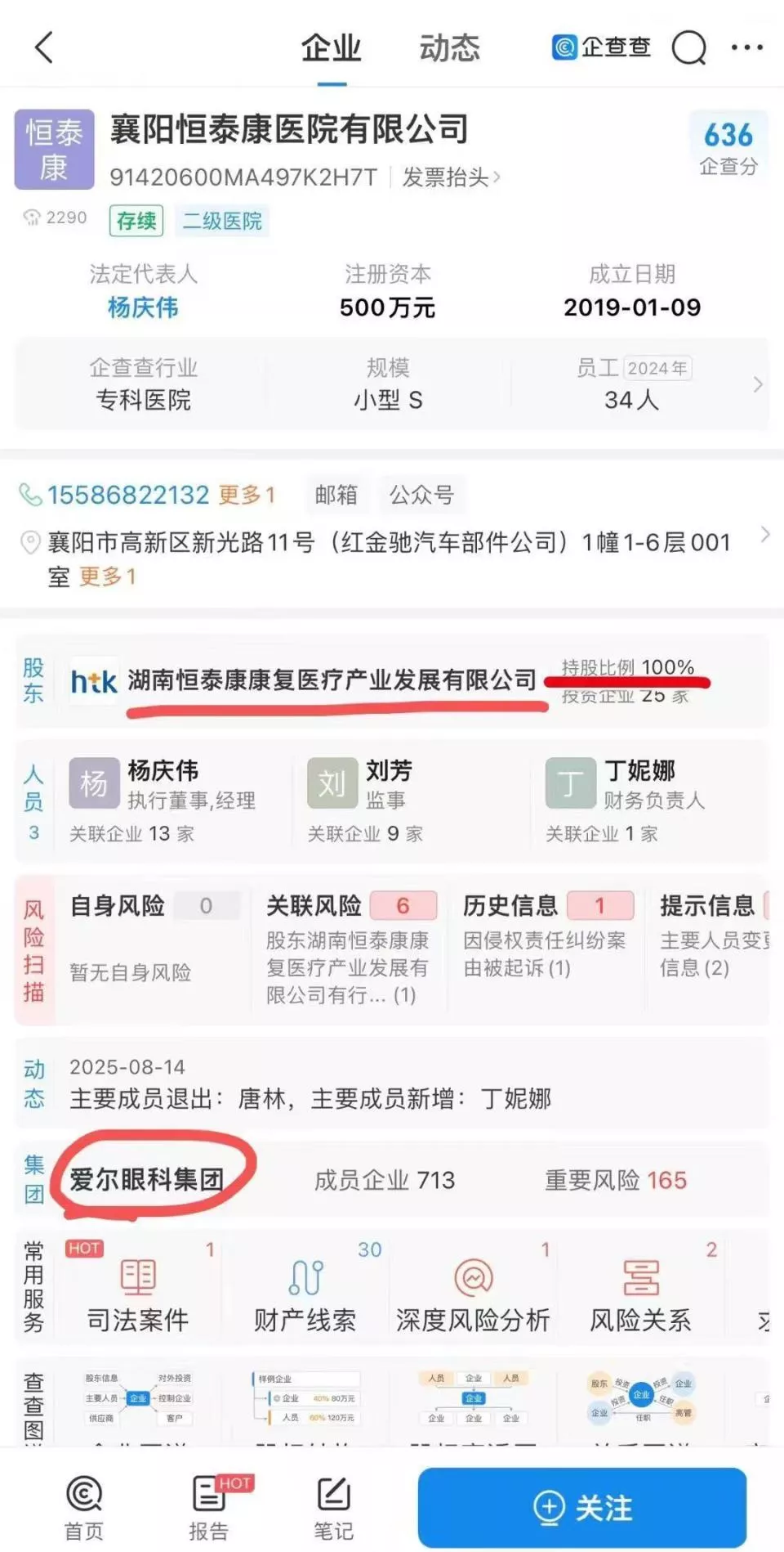华商报大风新闻记者注意到,湖南恒泰康康复医疗产业发展有限公司除了实控襄阳恒泰康医院有限公司外,还实控了18家精神病医院,该公司2024年工商年报参保人数为2人。该公司由湖南爱尔健康产业发展有限公司出资9690.5万元,于2016年5月6日持股81.9978%。