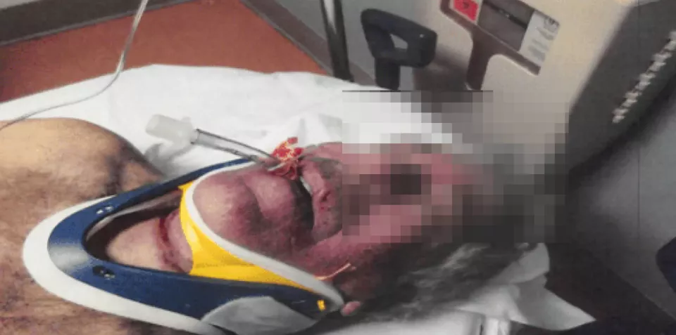 还有照片显示,爱泼斯坦的脸红肿异常,脖子上有深深的血色勒痕,其戴着颈托,一根透明的管子接到他的嘴里。另有医学检测图像显示,他喉部的甲状软骨几乎完全断裂。