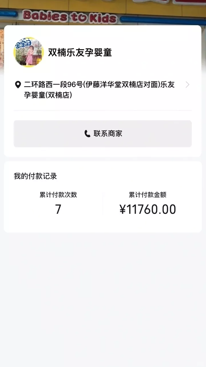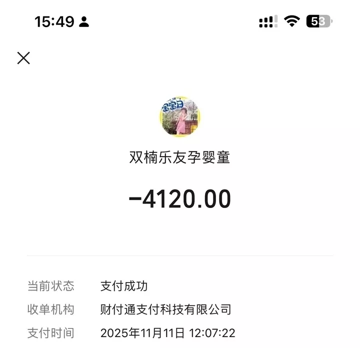 多张截图显示,消费者的付款对象并非全是个人,部分交易的收款方明确显示为“双楠乐友孕婴童”或“乐友孕婴童”。一名消费者在2025年4月至6月期间,多笔数千元的款项均支付给了“双楠乐友孕婴童”。
