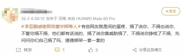 由于董宇辉本人要求保密具体金额,致使公众误以为其未捐款,进而引发网络对其攻击。但也有声音认为,“低调行善不应成为被攻击的理由”。