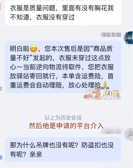 商家王女士告诉记者:“我气得手都发抖了,而且那个时候我还不知道这个衣服已经签收了20多天。后来查订单看到签收了20天之后,我就更气了,这两天晚上都没睡好觉。这个衣服打开包裹,它是用菜市场那种塑料袋装的,第一没有吊牌,第二没有防盗扣标,绝对是穿过的。(买家)对我们信息已读不回,到2月5日那天,说这个视频是我们伪造的,然后申请平台介入说商品质量有问题。(我)拒绝不了只能收回来,没有准备二次销售。发视频没为别的,就为争这口气,买家真的没有素质。”