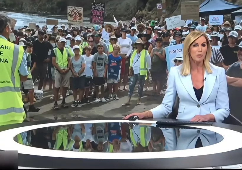 上月,新西兰Whangaparāoa半岛还举行一场大规模民众抗议,当地居民聚集在海滩,举着手写的标语。