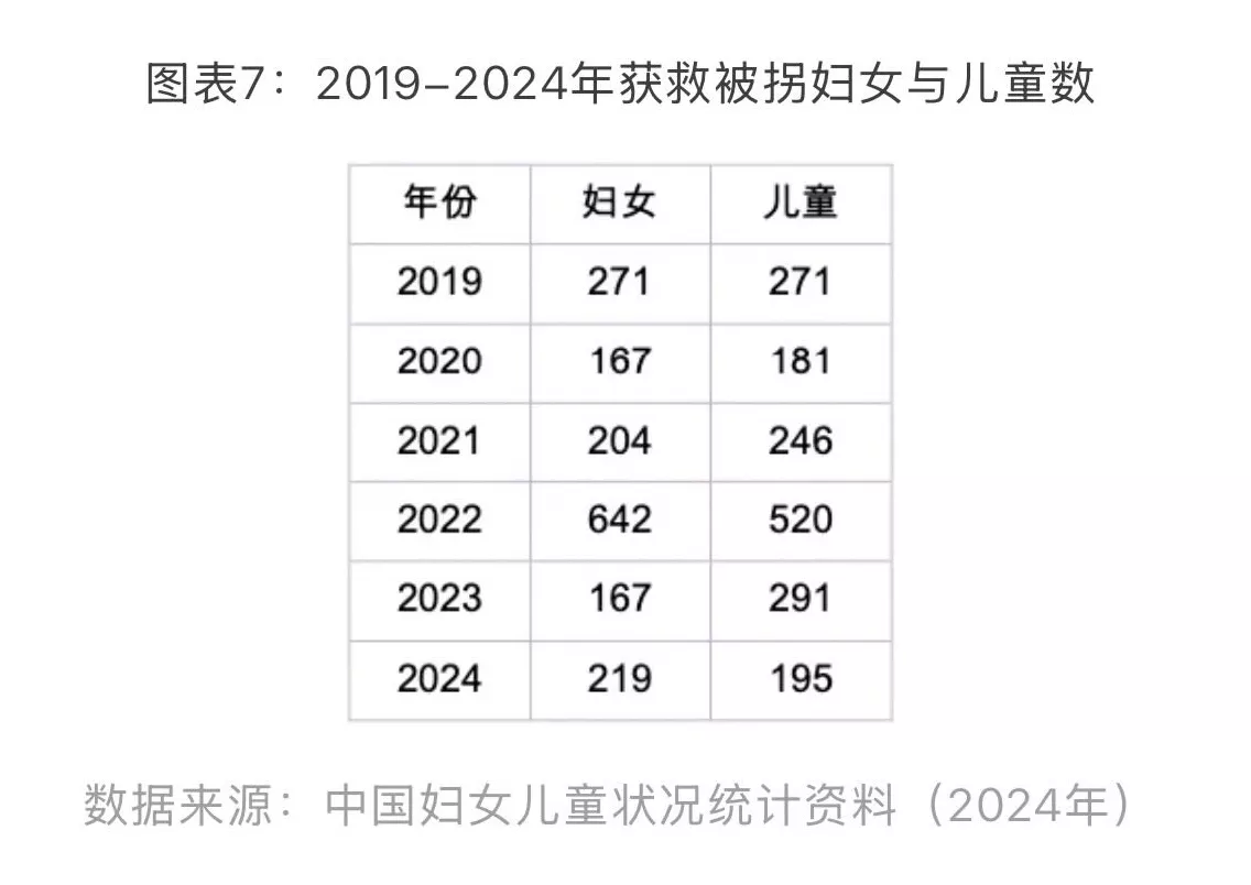 由于拐卖妇女儿童相关案件未破案件的基数仍然较大,加上因种种原因未被报案/立案的个案,未获解救的拐卖事件受害人的数量恐怕仍然很高。不仅如此,我们在有限的数据中还留意到,2019-2024年获救妇女及儿童人数与破案数和立案数都有较大差距。我们关注的核心在于,政府是否持续投入资源进行拐卖类案件的侦破、起诉和受害人营救,已破获的拐卖案件受害人,是否都顺利获救,是否得到妥善的医疗救助、安置、社会福利等后续支持,有关部门是否及时进行统计跟踪。这些问题的答案将揭示政府在治理拐卖案件中究竟是“重打击,轻事前预防和事后救助”,还是真正三管齐下地治理人口拐卖。