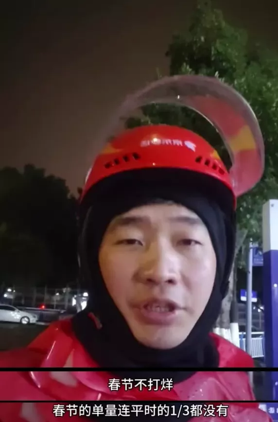 1月下旬,抖音博主“京东外卖老杨”发布视频,直指平台春节运营安排对一线骑手的影响。在他看来,“不打烊”被包装成福利,实际却意味着低单量、高待命。“春节的单量连平时的三分之一都没有”,但骑手仍被要求上岗。