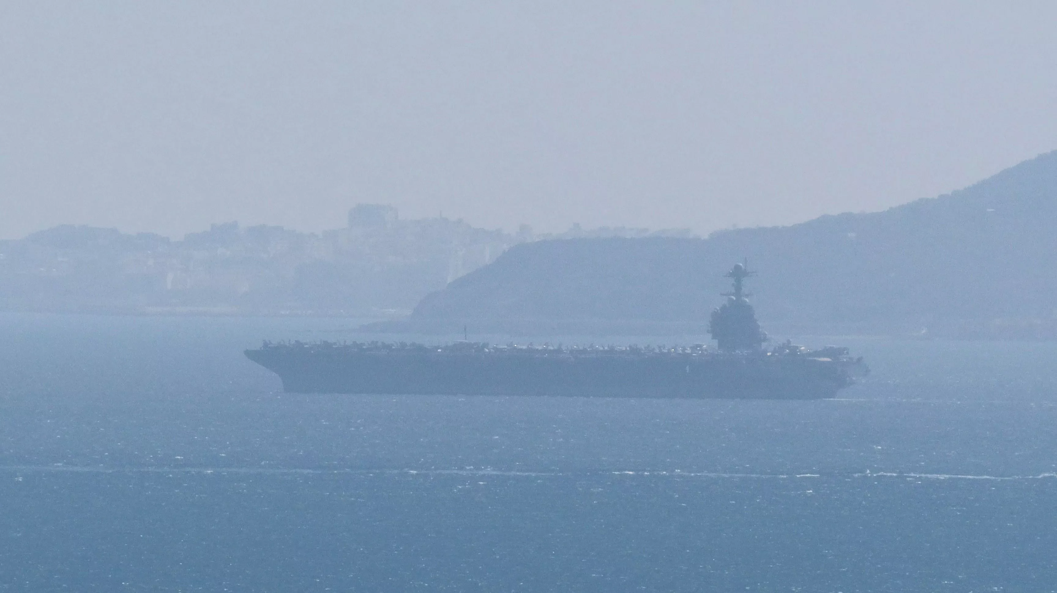2026年2月20日,福特号被看到穿越直布罗陀(Gibraltar)海峡。(Reuters)