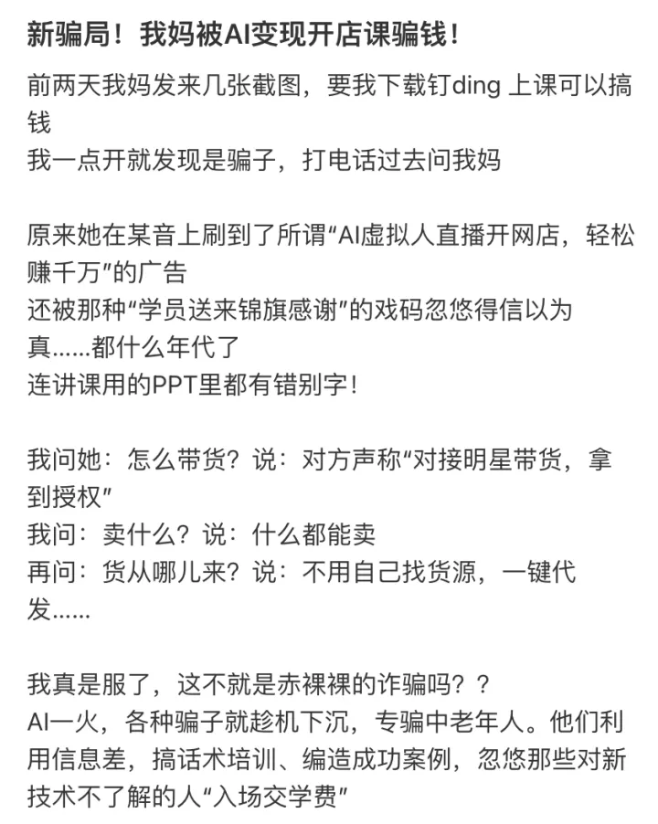 今年春节,年轻人发现真正应该担忧的是老年人太相信科技,相信AI致富的新风口——