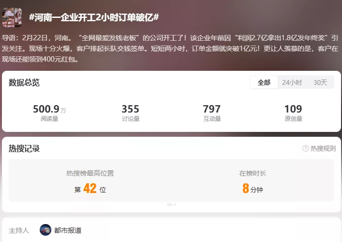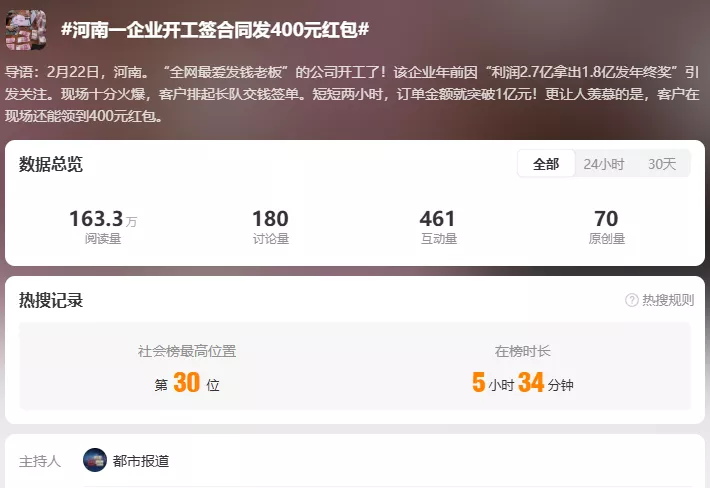 “最爱发钱老板”又火了!开工首日两小时签单破亿