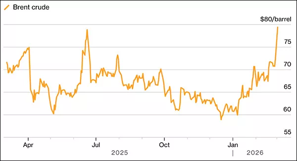 布伦特原油价格飙升彭博社制图