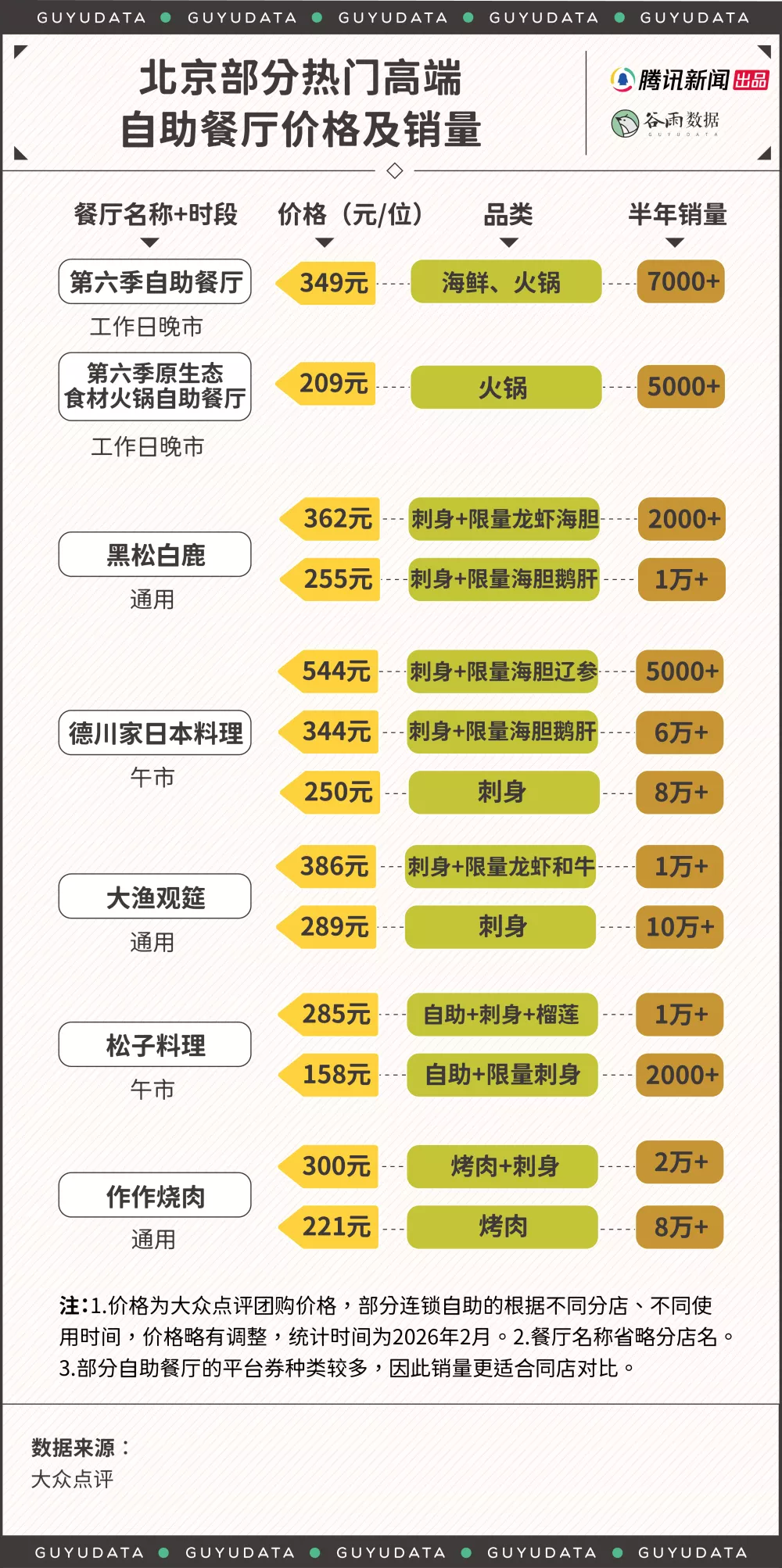 一个看似矛盾的现象是,即使是三五百元的贵价自助依然门庭若市。《每日人物》报道中,如北京的第六季、铭门盛宴,成都的雍容荟,贵阳的丽炙,全国各地不少贵价海鲜自助都生意火热。
