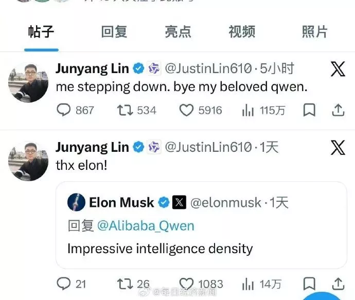 据报道,阿里Qwen负责人林俊旸发朋友圈告别阿里。
