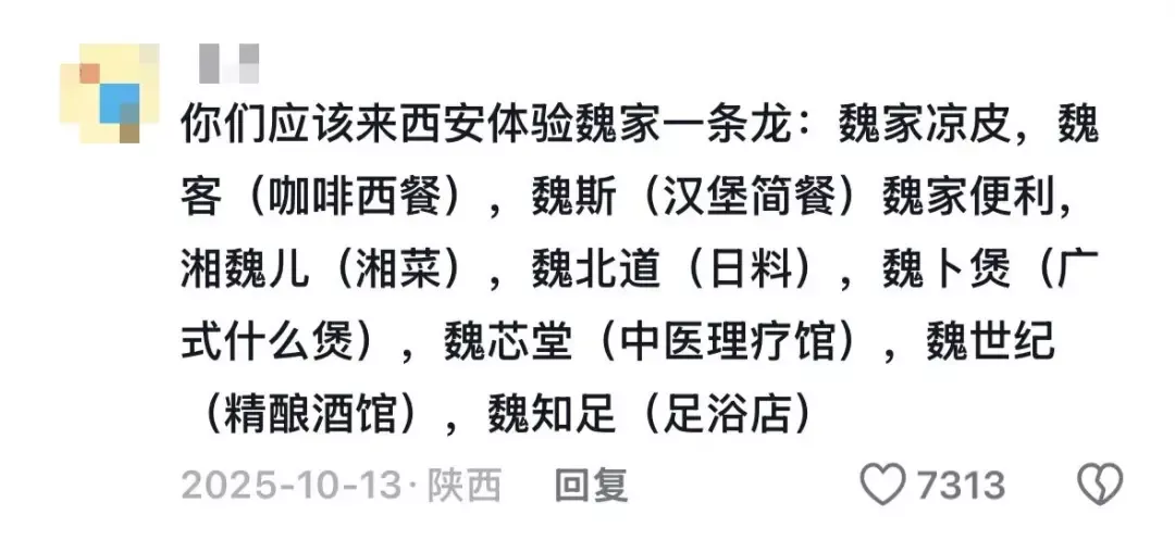 魏家凉皮、魏斯理、湘魏兒、魏客、魏北道、魏知足、魏芯堂……放眼望去,普天之下,莫非魏土。