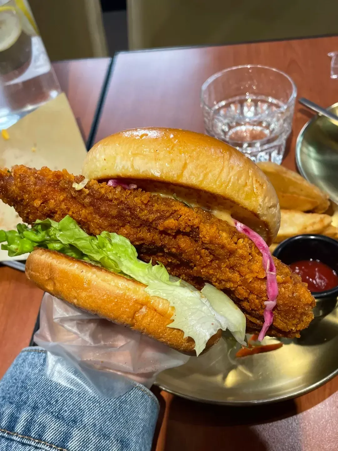 还有魏斯理汉堡,主打一个图片不止仅供参考,17块钱的炸鸡堡端上来才发现,原来真正想要逃跑的鸡排,两片面包是夹不住的。