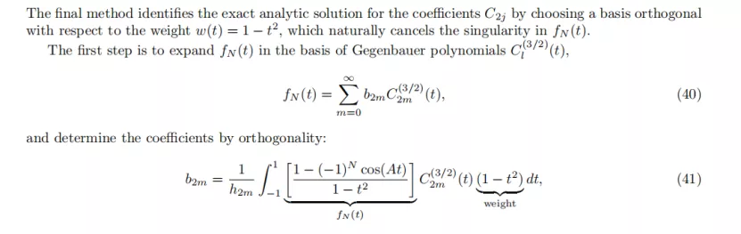 研究团队认为,在这些解法中格根鲍尔方法最优雅,原因在于其正交权函数 (1-t²) 恰好抵消了被积函数 f_N(t) 分母中的