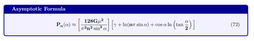 这个问题的关键在一个超级难算的积分,它是计算宇宙弦在振荡时辐射出的引力波功率谱,具体来说是一个在球面上的积分
