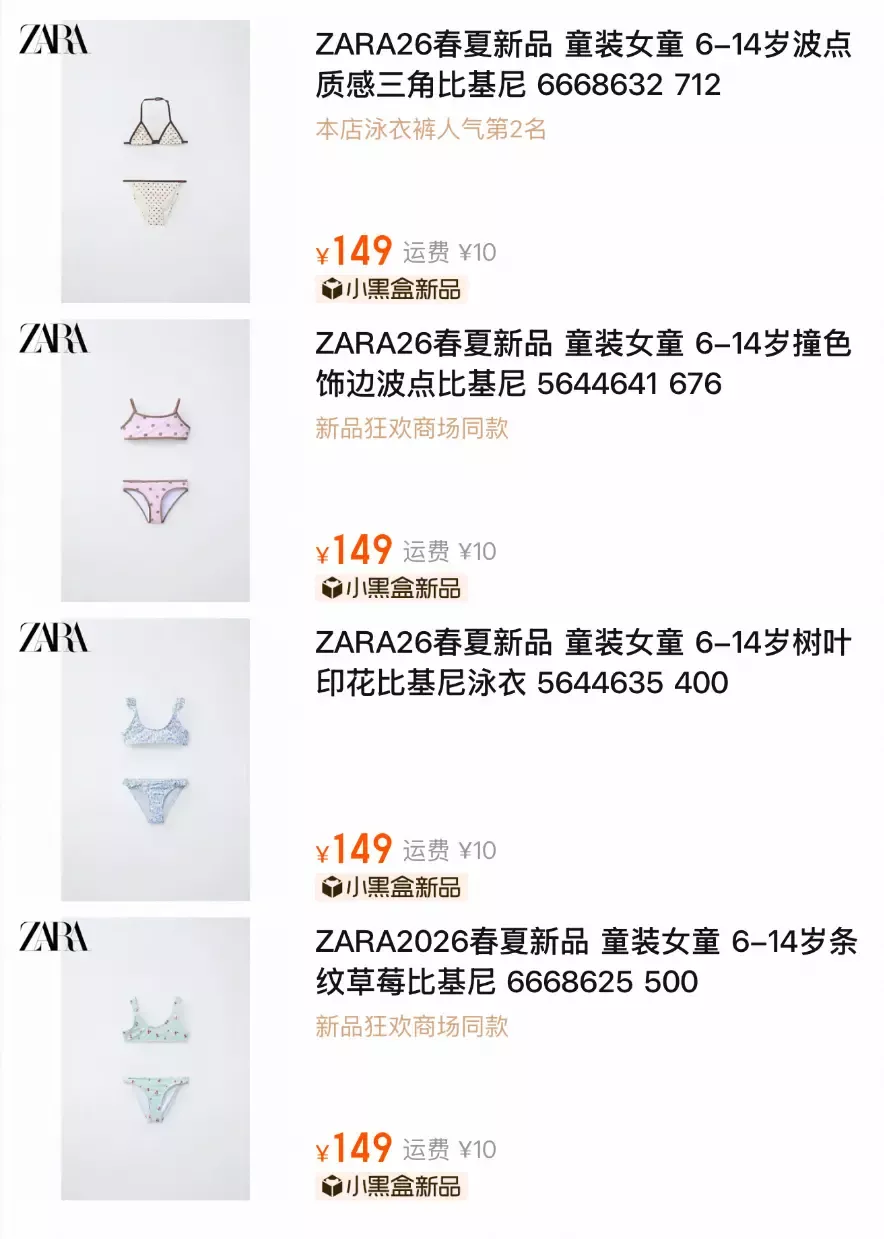 ZARA售“三点式”泳衣,标“6-14岁女童穿着”