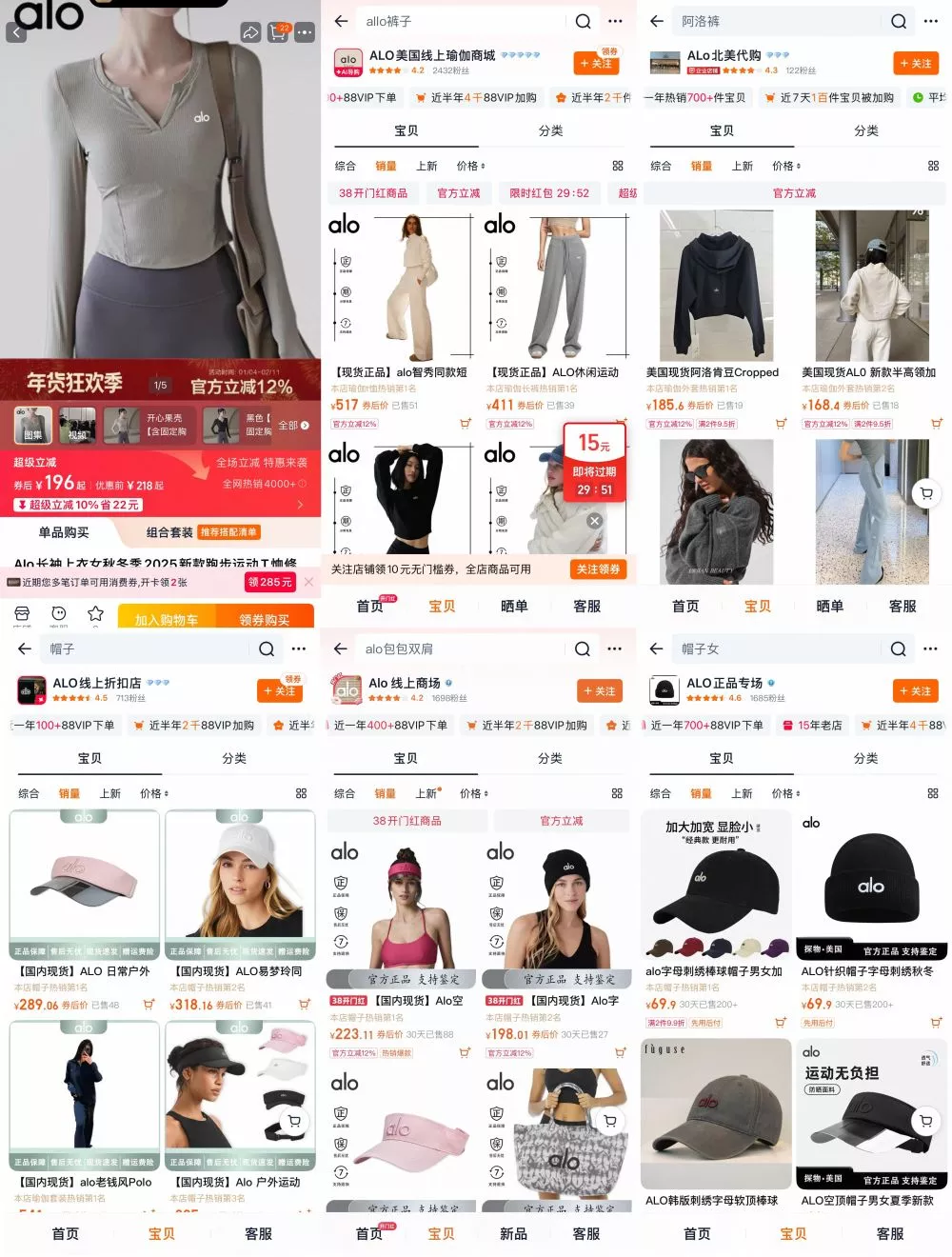 消费者卢野就曾陷入这样的误区。“当时我在淘宝搜索瑜伽裤,浏览过程中看到了好几家alo的店铺,我一直以为这个品牌已经在淘宝开了官方旗舰店。”直到被告知alo尚未正式进入中国市场,她才恍然大悟。“我还一直觉得这个品牌定价比Lululemon便宜,可以作为平替选择呢。”