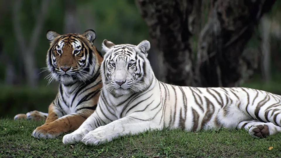 近日,重庆永川乐和乐都动物主题乐园的两只老虎因表情“反差感十足”在网络走红,被网友戏称为“没头脑”和“不高兴”。更有意思的是,两只老虎体色一金一白,是一对“龙凤胎”。那么问题来了:同一对父母,为什么能生出颜色差异这么大的小老虎?