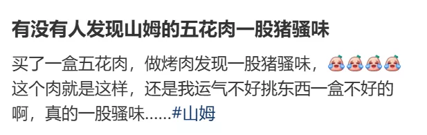 搜索发现,有不少用户吐槽过在山姆买到的猪肉有猪骚味。