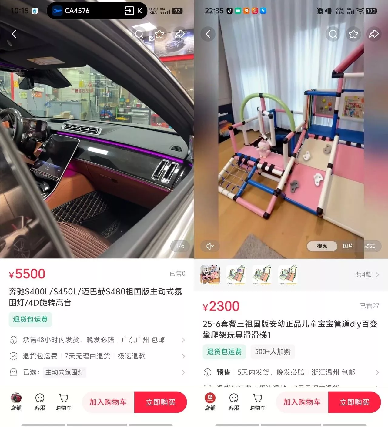 实际上,这些所谓的祖国版,并不意味着低价。比如,某商家所售“祖国版百变攀爬架玩具滑滑梯”售价2300元,已售27件;而所谓的“奔驰迈巴赫祖国版氛围灯”,甚至高达5500元。