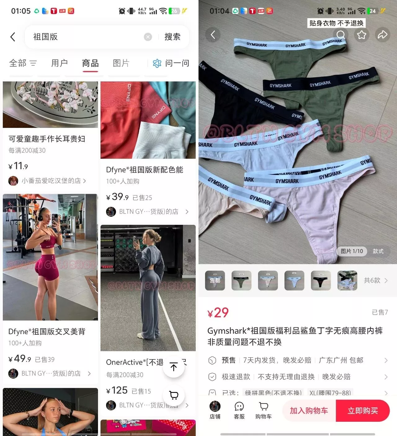 不止儿童,成人也会受到盗版商品的危害。比如“祖国版”内衣裤、袜子、服饰,由于产品材质、卫生无法得到保障——外界无从得知这是否翻新,是否暗藏了有害物质,很容易引发红疹、过敏等健康问题。