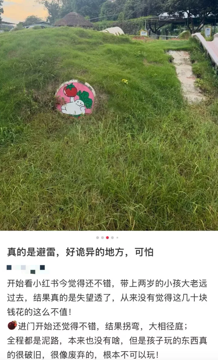 另一种常见的野生游乐园选址思路,定位城郊,日常靠团购和同城直播揽客。而这类,则被归结为爱做功课家长的定向踩雷区。