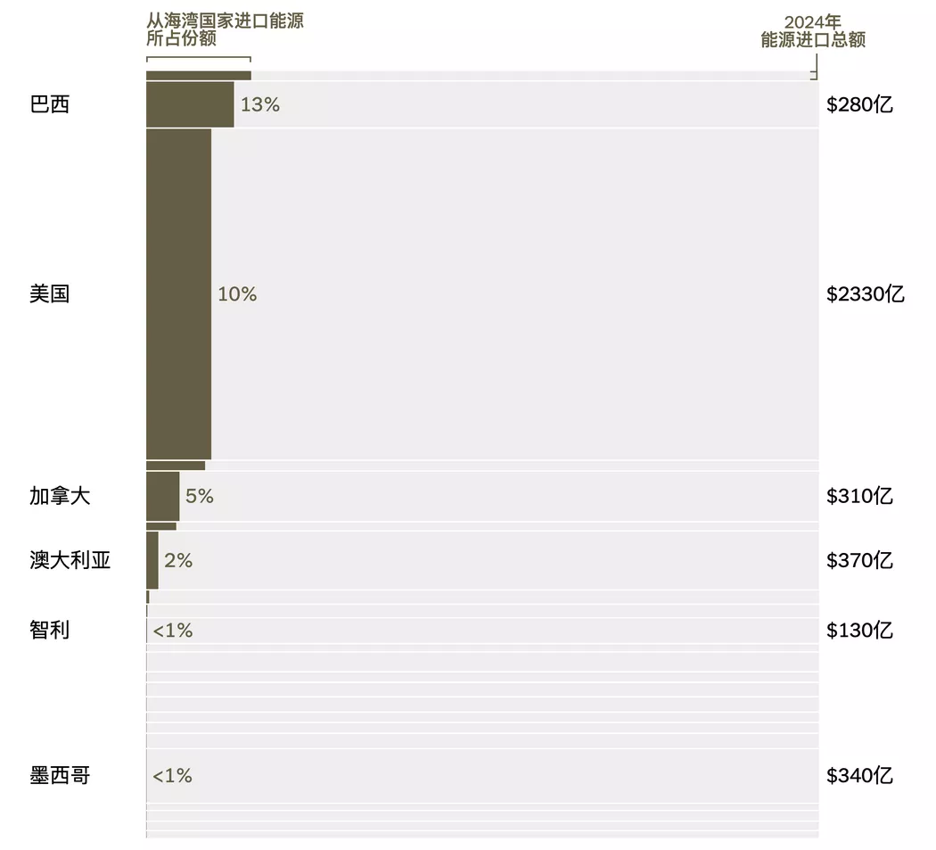 注:仅显示从海湾国家进口能源的国家。