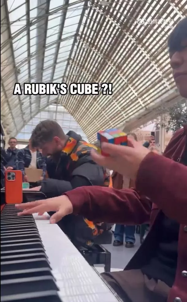 郎朗巴黎车站和外国博主斗琴 还腾出1只手玩魔方…
